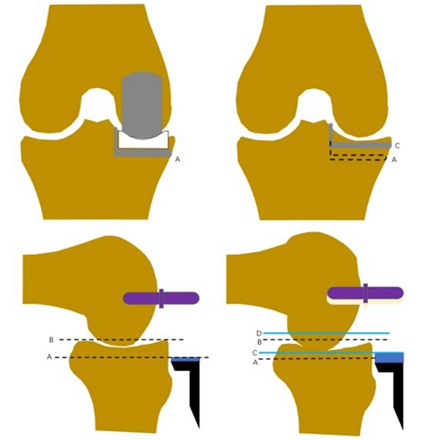 我们探索改良胫骨截骨手术技术,通过减少胫骨截骨+增加后髁截骨的方法,保证了假体良好的支撑,并获得不错的随访结果。具体方法如下: