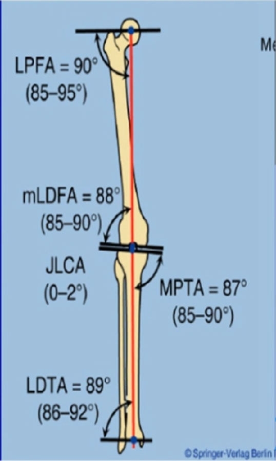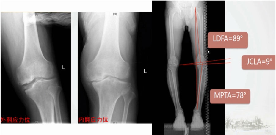 通过MAT测量全长片和内外侧应力位片,可以明确的测量出畸形的来源是股骨还是胫骨,有没有关节内磨损和韧带松弛。