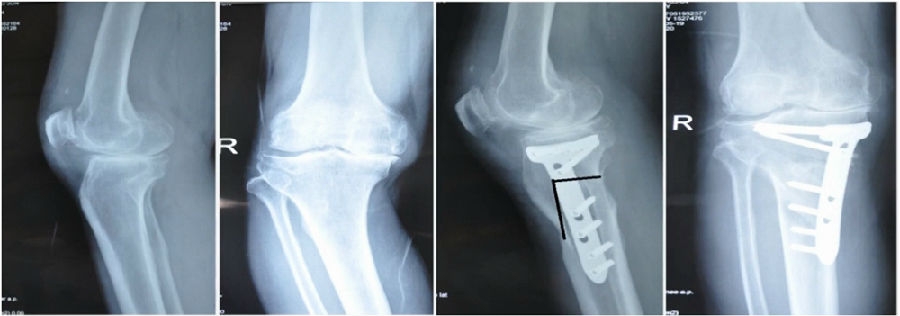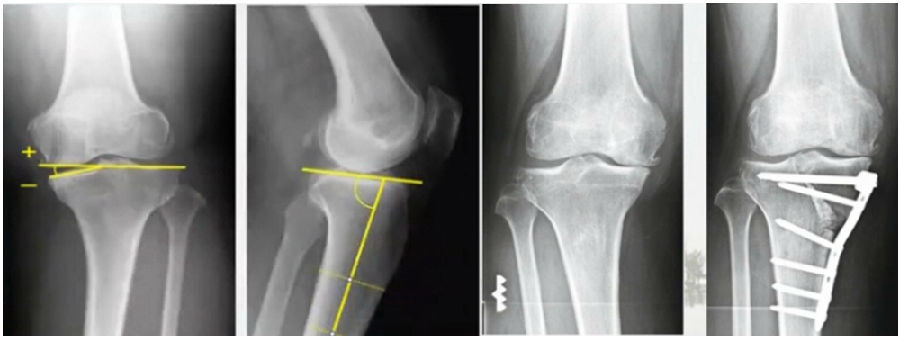 (2)根据畸形来源,关节间隙,矫正角度,髌骨高度,是否伴有复合畸形等情况采用个体化的HTO可提高治疗效果。