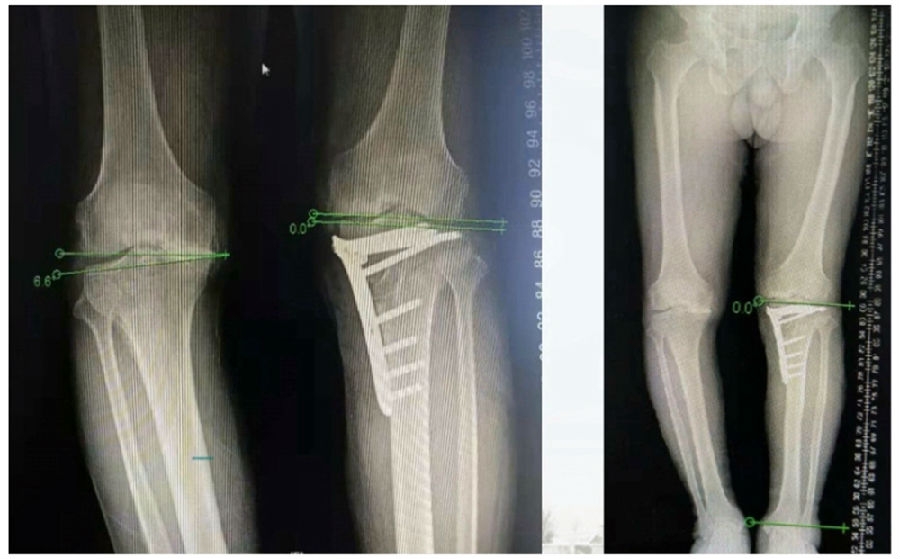 术后检查证实达到了术前预期的手术效果,关节线达到了平行,半脱位得到矫正,同时关节线和地面水平。病人行走达到了理想的效果。