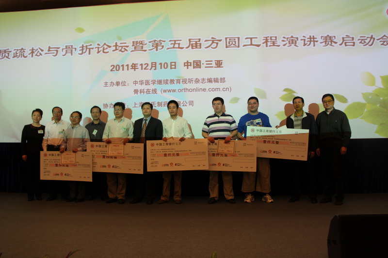 2011年12月10日,来自全国的30余位专家代表及骨科医师齐聚海南三亚参加了“2011方圆论坛骨质疏松专题总结暨病例总评会”,会议由中华医学会骨科学分会副主任委员,中国医师协会骨科医师分会会长上海交通大学附属第六人民医院曾炳芳教授;中华医学会骨科学分会副主任委员及关节外科学组组长,西安交通大学附属第二医院王坤正教授共同主持。中华医学会骨科学分会副主任委员,四川大学华西医院骨科暨骨质疏松中心主任裴福兴教授;中华医学会骨科学分会委员,广东省骨科学分会主任委员,南方医科大学附属第三医院院长金大地教授;中华医学会骨质疏松与骨矿盐学分会副主任委员,骨科学分会骨质疏松学组委员,南京鼓楼医院林华教授;中华医学会骨科学分会创伤学分会委员,广东省骨科学分会副主任委员,北京大学深圳医院院长肖德明教授;中华医学会骨科学分会关节外科学组委员,广东省骨科学分会副主任委员,中山大学附属中山第一医院廖威明教授;湖南省骨科学分会副主任委员,湖南省人民医院黄象望教授;中华医学会骨科学分会创伤学分会秘书长暨骨质疏松学组委员,北京积水潭医院副院长贺良教授;中华医学会骨科学分会骨质疏松学组委员,北京友谊医院唐海教授;中华医学会骨科学分会骨质疏松学组委员,重庆医科大学附属第一医院胡侦明教授;中华医学会骨科分会基础学组委员、骨质疏松学组委员,中山大学附属中山二院丁悦教授;中华医学会电子音像出版社社长,史红编审;中华医学继续教育视听杂志编辑部主任、骨科在线主任、中国健康促进基金会理事兼副秘书长丁晓榕女士;上海罗氏制药罗盖全市场经理谢琼女士等参加出席会议。