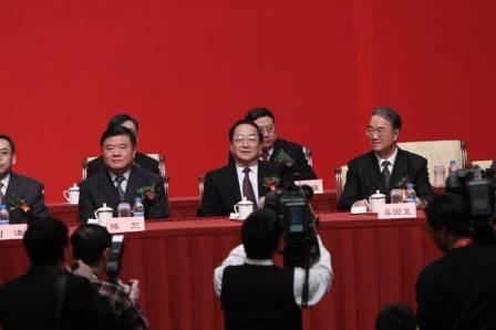 李明教授科研团队接受中共中央政治局委员、上海市市委书记俞正声、全国人大常委会副委员长桑国卫、卫生部部长陈竺的颁奖