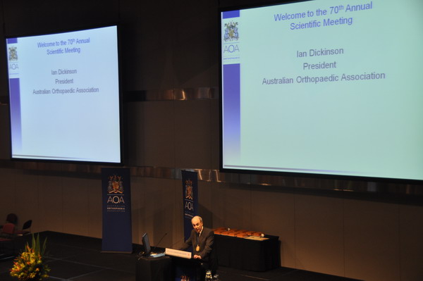 1、本次大会的开幕式由AOA主席Ian Dickinson教授主持的,大会邀请了几十个国家的骨科学会主席参加,每位嘉宾的资料制作成一张幻灯片,大会主席对每位嘉宾进行了详细的介绍,使参会者能够充分了解到各位嘉宾的信息。另外大会还表彰了澳大利亚骨科届的杰出人士和专家。