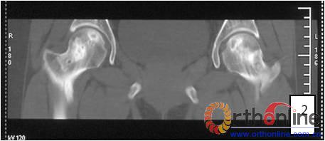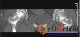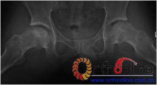 1.2 分期与分型 所有患者术前均行双髋MRI扫描(GE Sigma profile 1.5T T1WI和T2WI,部分患者尚加用T2WI压脂及STIR序列),双髋正位和蛙式位X线片,大多数患者也行双髋CT扫描,冠状位、轴位及矢状位二维重建。