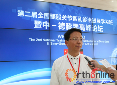 在“第二届全国髌股关节紊乱诊治进展学习班暨中-德膝踝高峰论坛”现场,骨科在线网站编辑对中华医学会骨科学分会关节镜学组委员、上海医学会骨科分会关节镜外科学组组长、上海交通大学附属第六人民医院关节镜外科主任、本次大会主席赵金忠教授进行了专访。
