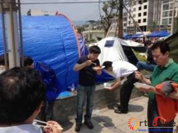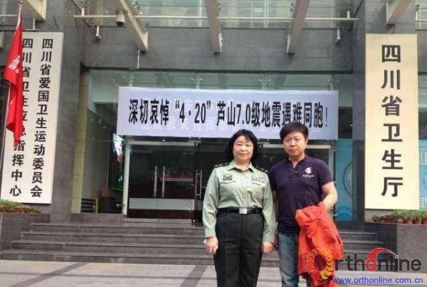 林进教授与由301医院肾病科陈香美院士带领的国家专家组成员在四川省卫生厅门前参加震灾遇难同胞哀悼日仪式