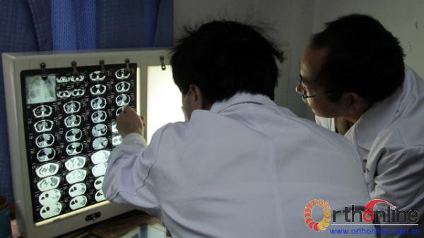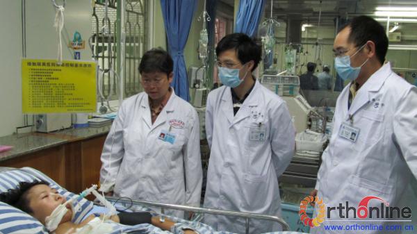 重症监护专科副主任吕友堤和胸外科刘文亮副教授在重症监护室会诊病人
