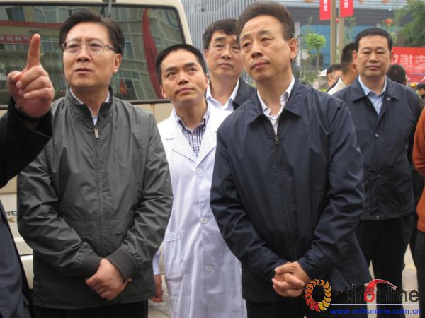 上午11点20分,四川省省委书记王东明在卫生厅厅长沈骥的陪同下前来慰问节日期间仍旧奋战在救助伤员第一线的医务人员。获悉我院专家医疗队也在这里,王书记专程找到医疗队队长肖涛,通过肖队长转达了四川人民对医疗专家们无私帮助震区群众的感谢与敬意。他说,专家队的驻扎,无疑是芦山县人民医院强大的技术支撑与精神支柱,也将给芦山人民的健康提供有力的保障。最后,他还通过医疗队转达四川人民对湖南医务工作者和湖南人民的感谢和节日的问候。