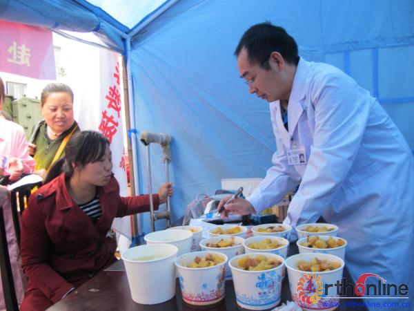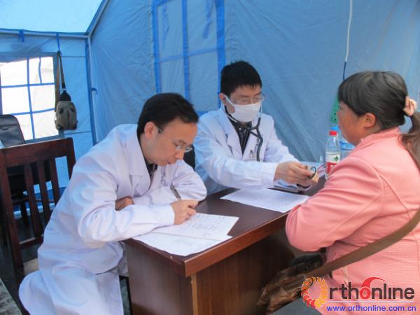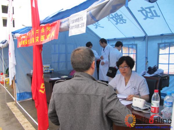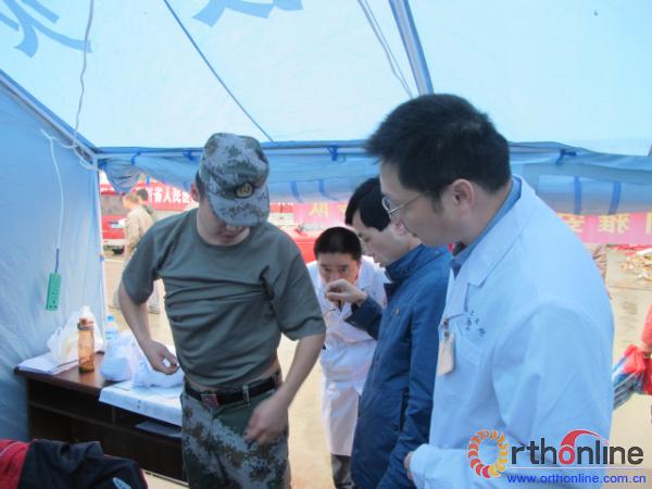 病人越来越多,为了加快看病的速度,专家们两人一组,互相配合。此时,不同的专业,不同的职称,大家只有一个共同的目标,尽量给震区人民提供更多的帮助。