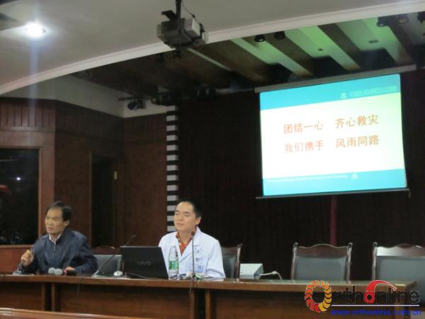 4月20日已经过去了十多天,目前,医疗救援工作重心已经转向为对地震伤员的身体康复及心理辅导和干预上来。为了切实降低地震伤员残障程度、保障灾区人群和震区伤员身心健康,雅安市人民医院特别邀请医疗队队长肖涛教授就地震灾后积极进行心理康复的问题进行探讨和交流。下午3点,一堂“地震灾后积极心理康复”的学术讲座在医院学术厅二楼准时开始。主管科教工作的邵勇泽副院长主持会议,包括院长邱雄在内的近200名医护人员、伤员及伤者家属参加了学术讲座。肖队长讲授了灾后躯体心理救治一体化的概念和方法、医护人员在救治伤员时如何化解压力,让在座的听众受益匪浅。
